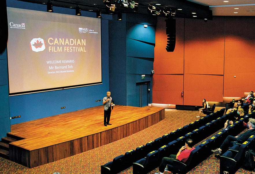 Last but not least, alumni connections to their alma mater have been tested during this period. The NUS Office of Alumni Relations (OAR) responded by moving events online, such as its many workshops and talks, the popular Thirsty Thursdays and its annual Chinese New Year (CNY) Appreciation Dinner. As restrictions eased towards the end of 2020, OAR brought back its Film Festivals physical event series, albeit on a much smaller scale. In March, the Indian Film Festival 2021 took on hybrid form as each on-campus screening accommodated up to 50 guests, while many more watched the films virtually from the comfort of their homes. “The main challenge was ensuring the same level of engagement and interactivity that one would gain from physical events,” says OAR Director Mr Bernard Toh (Architecture ’84), citing “Zoom fatigue” as an ever-present concern. For the virtual CNY Appreciation Dinner 2021, guests had festive meals delivered to their homes and were treated to pre-recorded performances. Another worry was that senior alumni might be left out of the digital world. OAR linked the NUS Senior Alumni group with the Computing Alumni Association, who conducted physical workshops (with safe management measures) to teach them how to use Zoom. NUS Senior Alumni members were thus able to continue their monthly Tea & Chat and Sing-Along sessions via the platform.