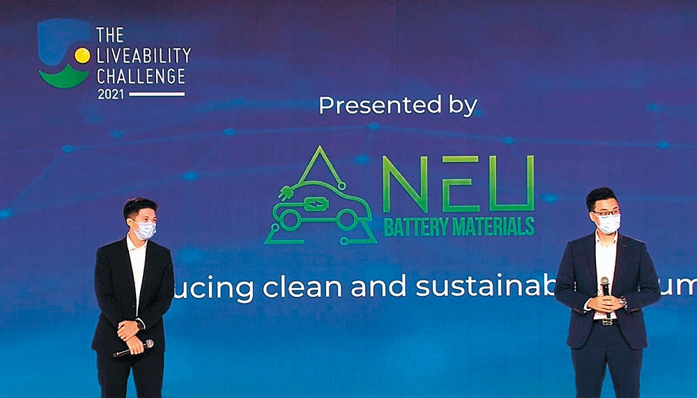To Mr Bryan Oh and Mr Kenneth Palmer, the best way to make an impact for a cause you care about is to do it yourself as an entrepreneur. The pair — who met as undergraduates at NUS — are the co-founders of lithium battery recycling company NEU Battery Materials, which has commercialised the technology to recycle lithium from used batteries. This potentially reduces the need for lithium mining, which has an adverse impact on the environment.EVs put on the road, in 2019 alone, produced 500,000 tonnes of battery waste, according to Eco-Business. Most of these batteries’ components are currently recycled, but a key one — lithium — is generally not. Lithium is often left out of the recycling process because extracting it and then purifying it for reuse is extremely complicated and expensive. Without an alternative, most battery manufacturers end up mining more lithium instead of recycling the lithium from batteries. This spells doom for sustainability efforts, as mining lithium has been shown to harm the environment in many ways. For instance, it is a tremendously resource-intensive process: approximately 2.2 million litres of water is needed to produce one tonne of lithium. And extracting that amount of lithium from the earth puts 15 tonnes of carbon dioxide into the air.