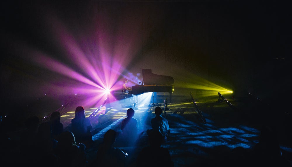 A handful of performances took place in intimate liminal spaces, an ode to the theme, Spaces Between. MOONRISE, an immersive multisensorial musical experience, took place in the UCC Atrium. Led by NUS Yong Siew Toh Conservatory of Music alumna Ms Churen Li (Music ’15), who goes by the stage name CHUREN, it featured a first-time collaboration with soundscape artist/music producer evanturetime and digital effects artist Prako. The visually stunning show featured CHUREN’s modern interpretations of classics such as Clair de Lune and Moonlight Sonata amid found sounds and subtle beat-driven soundscapes, complete with digital visual design. “We explored the liminal space between three different artistic praxes: classical piano, music production and video art,” CHUREN said. “We wanted to transcend the boundaries of our individual disciplines and build synergy between the realms of sound and vision. The ideal space for this project was not in a conventional arts space, but rather in the UCC atrium, to create the unexpectedness of walking into an artistic world that the audience member does not expect.”