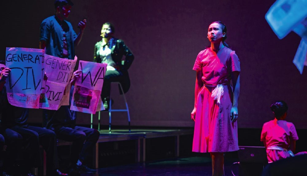 The pushing of these creative boundaries resulted in interesting collaborations and refreshing discoveries. End of the Line — a jukebox musical on the struggles of youth exacerbated by cyberbullying and peer pressure — stretched the abilities of the NUS Stage actors. It also brought to light the songwriting abilities of some of its talented cast, which included NUS Stage Vice-President, Ms Lim Jia Ying, a second-year Science student. “The other NUS Stage performances I’ve been involved in were very naturalistic and focused on acting,” said Ms Lim. “End of the Line, however, is a collaboratively devised piece, which weaves our personal life stories and experiences into a story that highlights what is important to our generation. It also incorporates live singing, lip-syncing, dancing and acting. This also marks my first foray into lyric writing and composition.”
