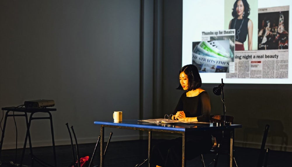 Also taking place in a liminal space was the one-woman play, The Future Show, headlined by Ms Jo Tan (Law ’04). It is the first Singaporean version of the internationally performed concept by Canadian playwright Deborah Pearson. Marketed as a performance to be staged in a secret location, The Future Show took place within the frills-free CFA Studios. It welcomed only a maximum of 40 audience members per show, making it the festival’s most intimate production.