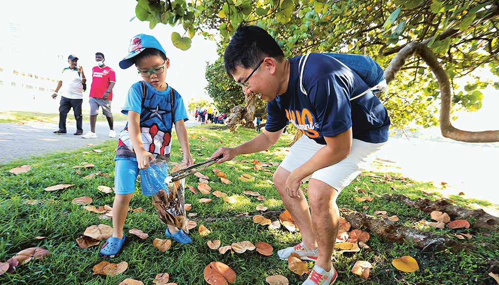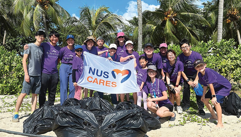 Started in April 2021, the quarterly SG Clean Day is spearheaded by the Public Hygiene Council, with partners including town councils and organisations like NUS. The recent island-wide event drew 4,801 volunteers, eclipsing previous numbers in the Singapore Book of Records for the Most Number of Participants in a Single-Location Clean-Up and Most Number of Participants in a Multiple-Location Clean-Up. The involvement of NUS volunteers, including alumni and their family members, showed the University’s dedication to sustainability. Mr Sidarath Sharma (Business ’18), an alumnus who recently started volunteering again, said: “These events give us the right values, reminding us not to take our clean city for granted and to give back to society. Volunteering brings a lot of satisfaction.”